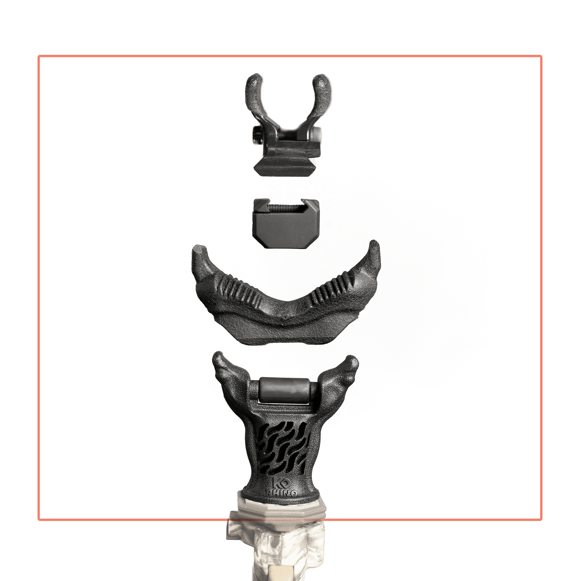 The KO Rhino Rest Pro Kit, comes with the KO Rest, Rubber cove, The KO Barrel Clamp and The KO Hith,